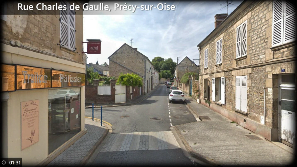 - Screenshot of a route created with Google Street view, here a street in a small town near Paris (Précy-sur-Oise)